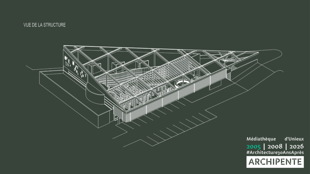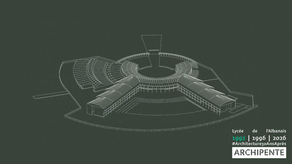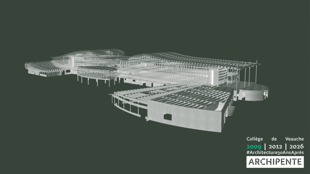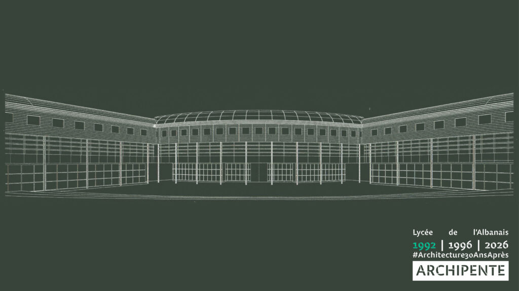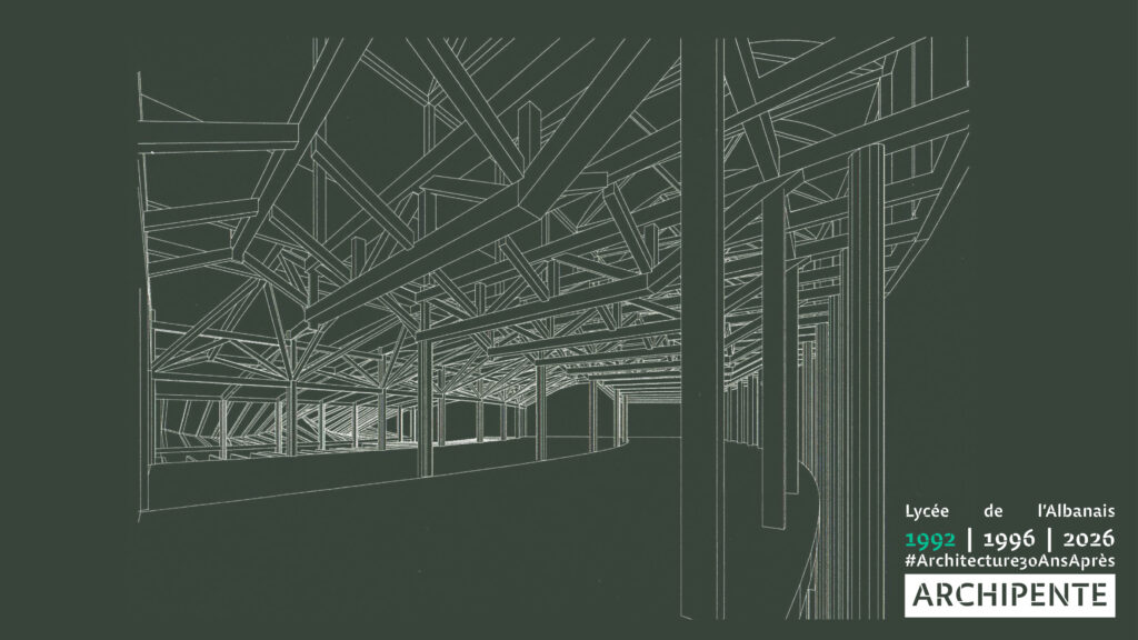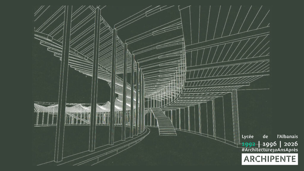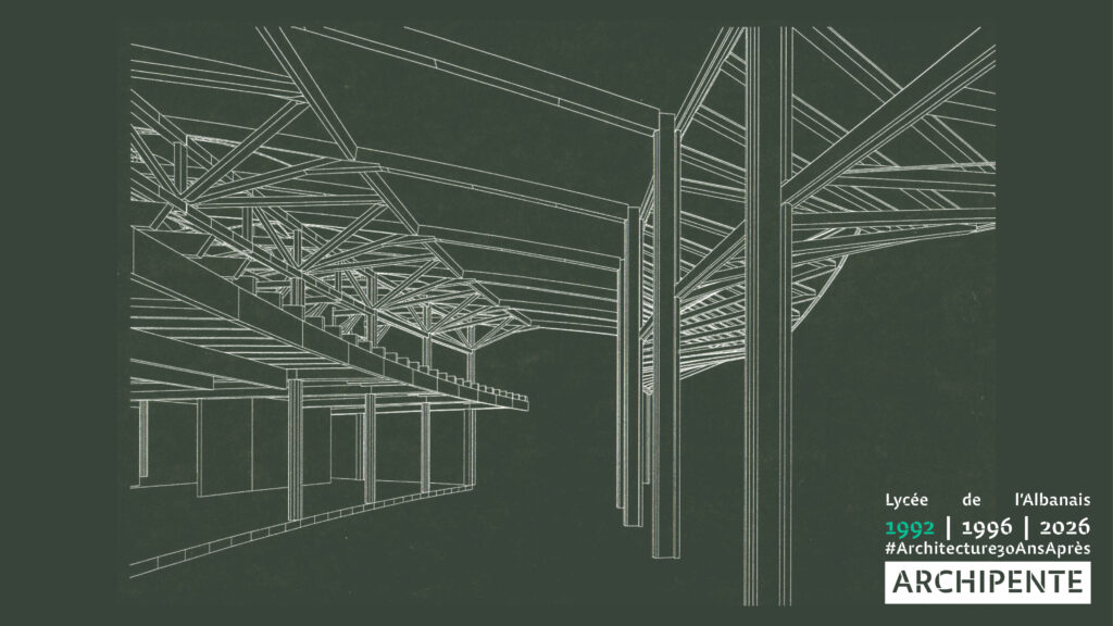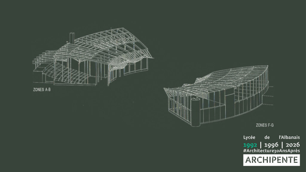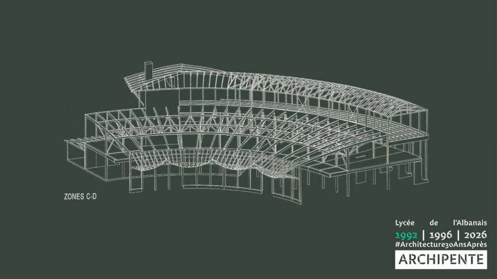 Photographes: Bertrand Bonnefond 1996 – Sandrine RIVIERE décembre 2025 – Perspective filaire: ARCHIPENTE sur Cadwork-04 1992