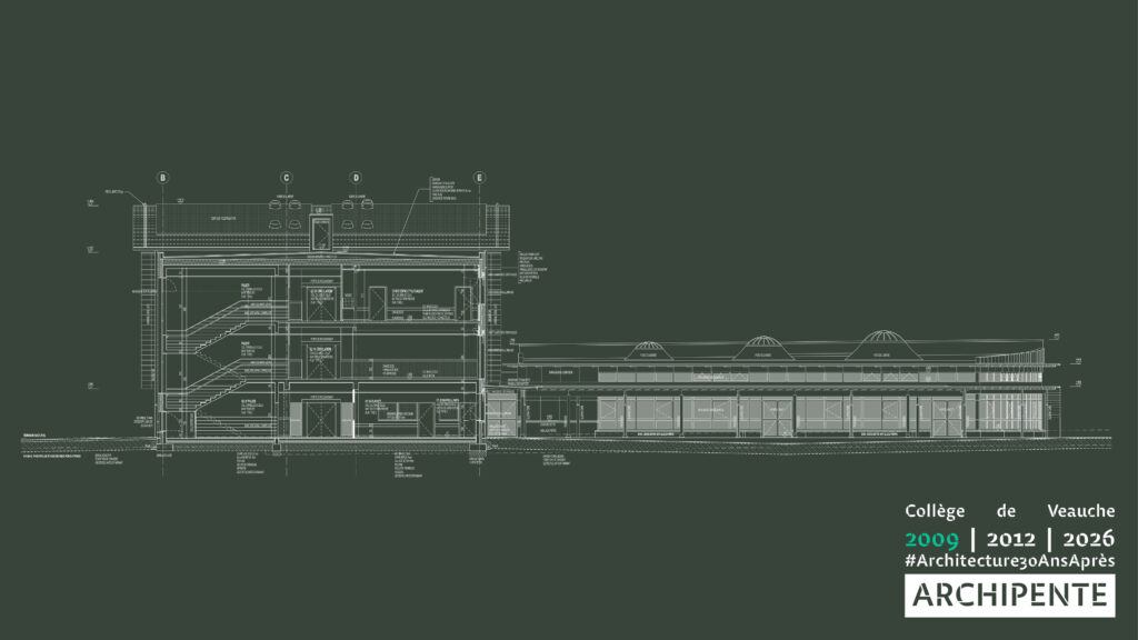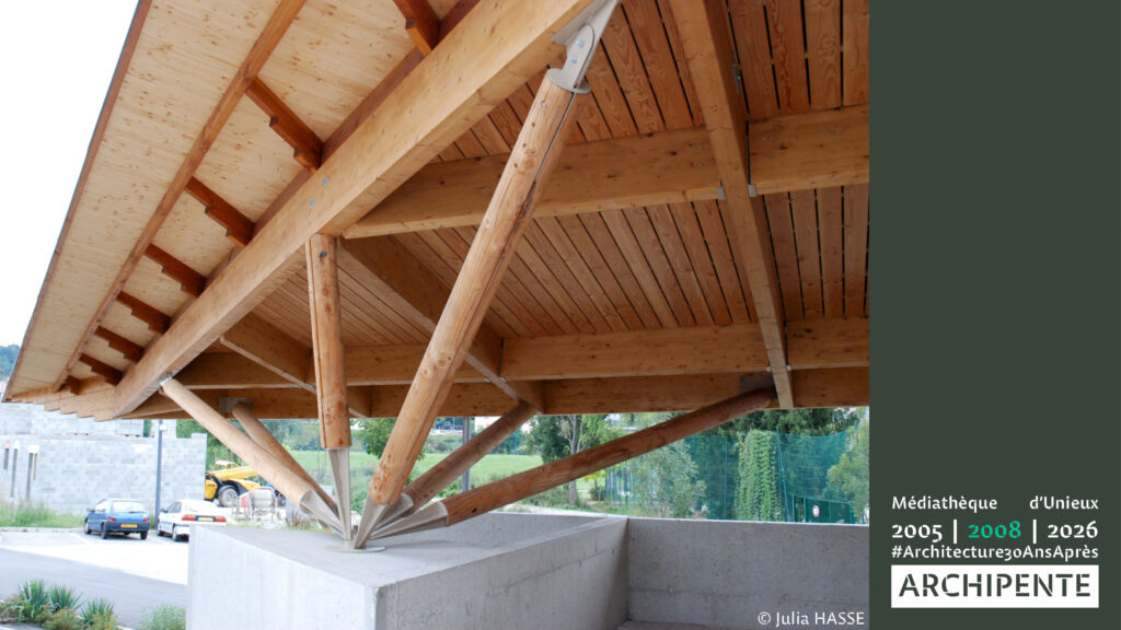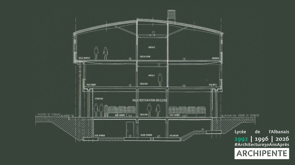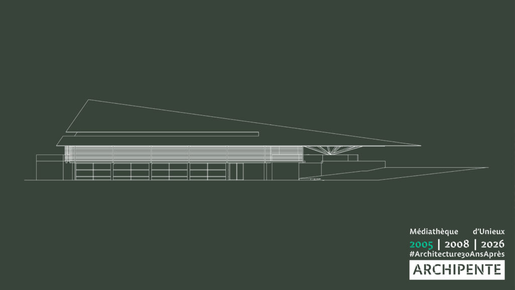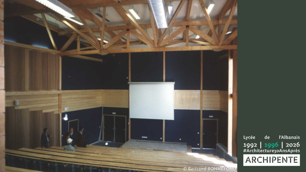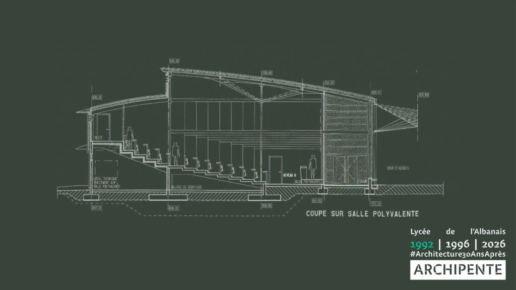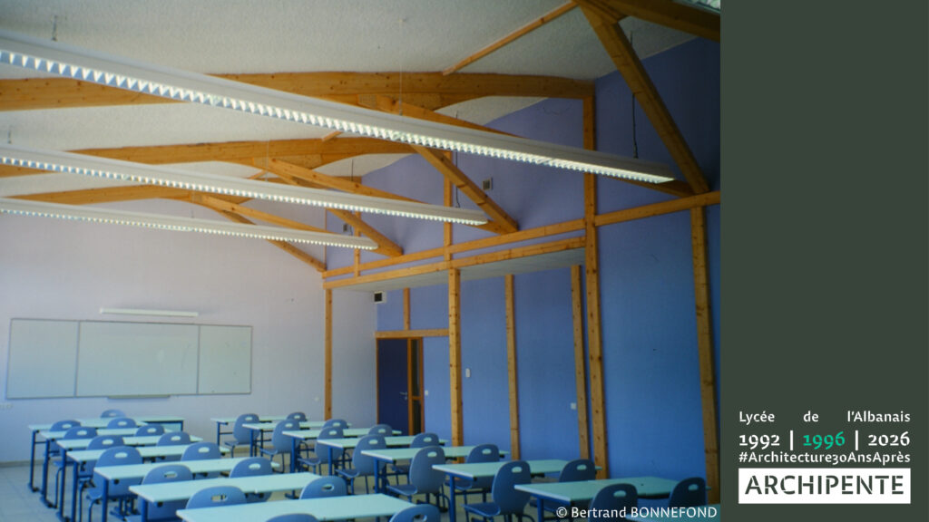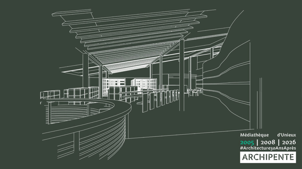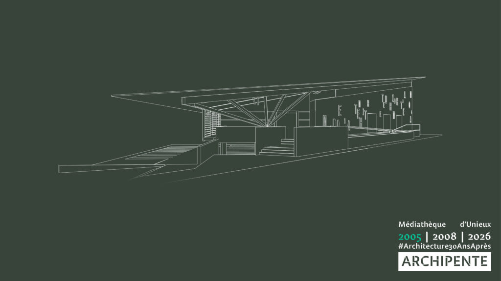 Photographes: Bertrand Bonnefond 1996 – Sandrine RIVIERE décembre 2025 – Perspective filaire: ARCHIPENTE sur Cadwork-04 1992