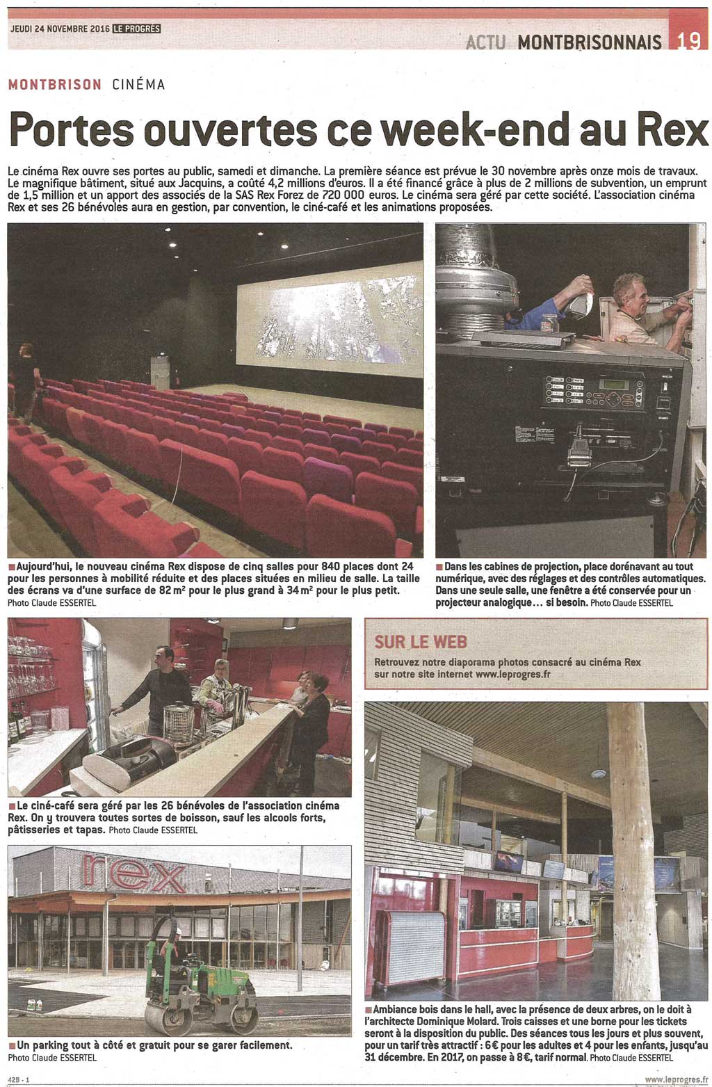 [Portes Ouvertes] Cinéma REX à Montbrison (42) 25 novembre 2016 Actu La presse locale relaie la journée portes ouvertes du REX, à Montbrison (42)